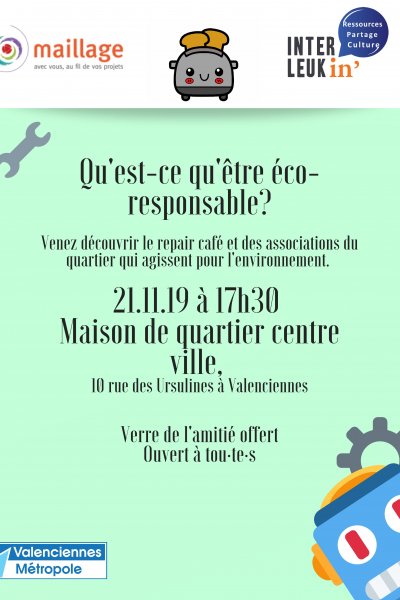 Le Jeudi 21 novembre 2019 Maillage et Interleukin’ organisent une sensibilisation à l’ESS et à l’écoresponsabilité à la maison de quartier centre ville de Valenciennes.